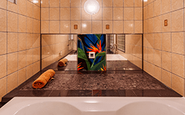 約42~45℃に温められたブラックシリカ(岩盤)の上に横になるだけで、遠赤外線とマイナスイオンにより、「デトックス効果」が期待されます。