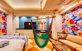今流行りのアウトドアを思わせるハンモックを室内で!