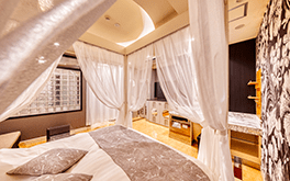 お姫様気分が味わえる天蓋に包まれて、リラックスした時間をお楽しみください。